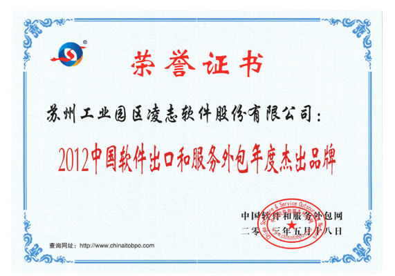 2013年5月,第九屆中國軟件出口(服務(wù)外包)排行榜發(fā)布會在寧海召開。十年的發(fā)展,凌志軟件在軟件外包上取得了喜人的成績,此次榮獲“2012年中國軟件出口和服務(wù)外包杰出品牌”和“2012中國軟件出口企業(yè)排名第8名”的稱號。