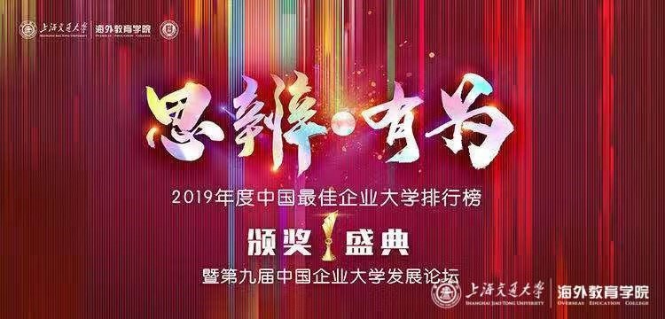 近日,由上海交通大學海外教育學院主辦,以“思辨.有為”為主題的2019年度中國最佳企業(yè)大學排行榜頒獎盛典暨第九屆中國企業(yè)大學發(fā)展論壇在上海隆重舉辦。該活動得到了上海交通大學及學院各級領(lǐng)導的關(guān)心和重視,上海交通大學黨委常委、黨委宣傳部部長胡昊作為2019年度最具影響力企業(yè)大學獎項的頒獎嘉賓出席活動,學院領(lǐng)導、一流企業(yè)大學校長、專家學者等匯聚一堂,共同見證2019年度中國最佳企業(yè)大學頒獎盛典。