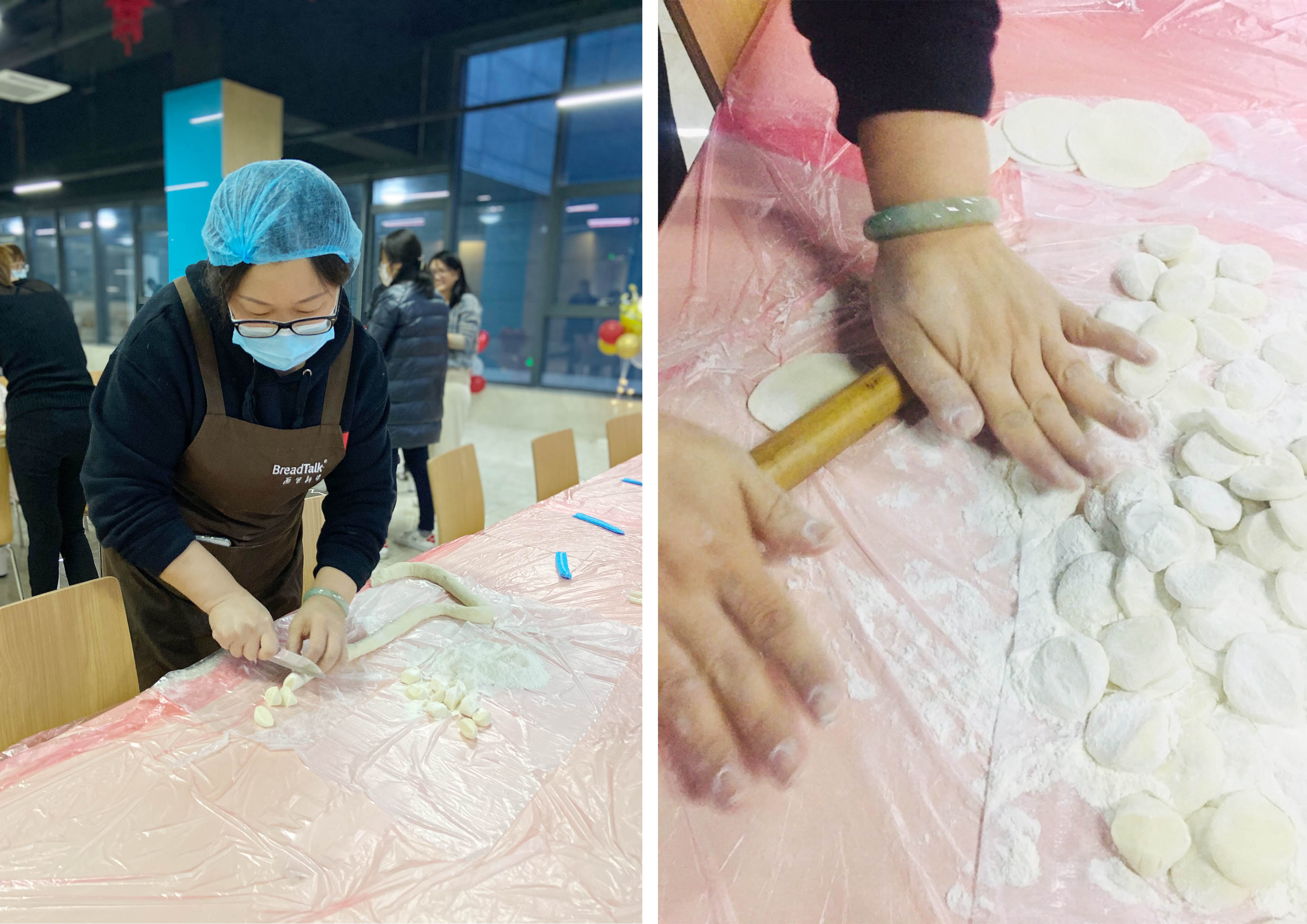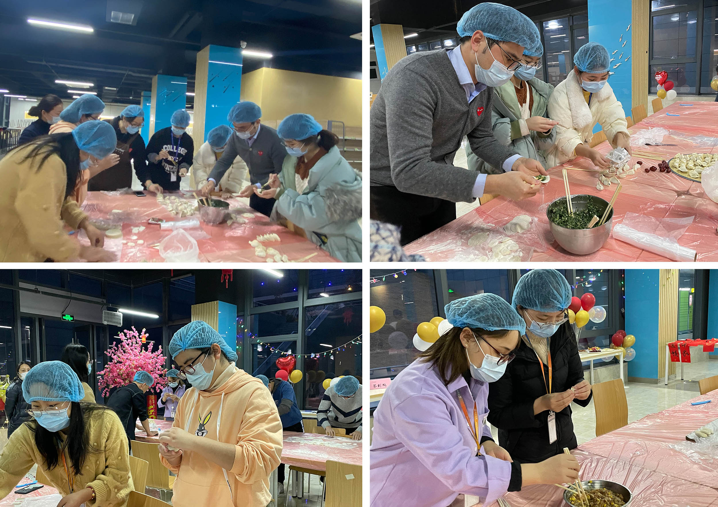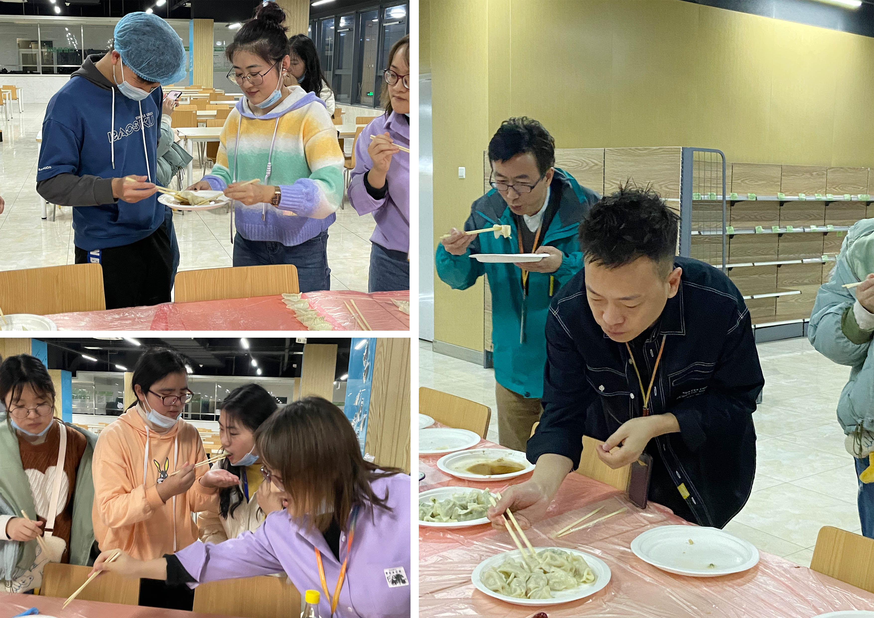 大家聚在一起,有的拌餡、有的分發(fā)餃子皮、有的包餃子,分工合作又彼此傳授經驗,氣氛好不歡快和熱鬧!
