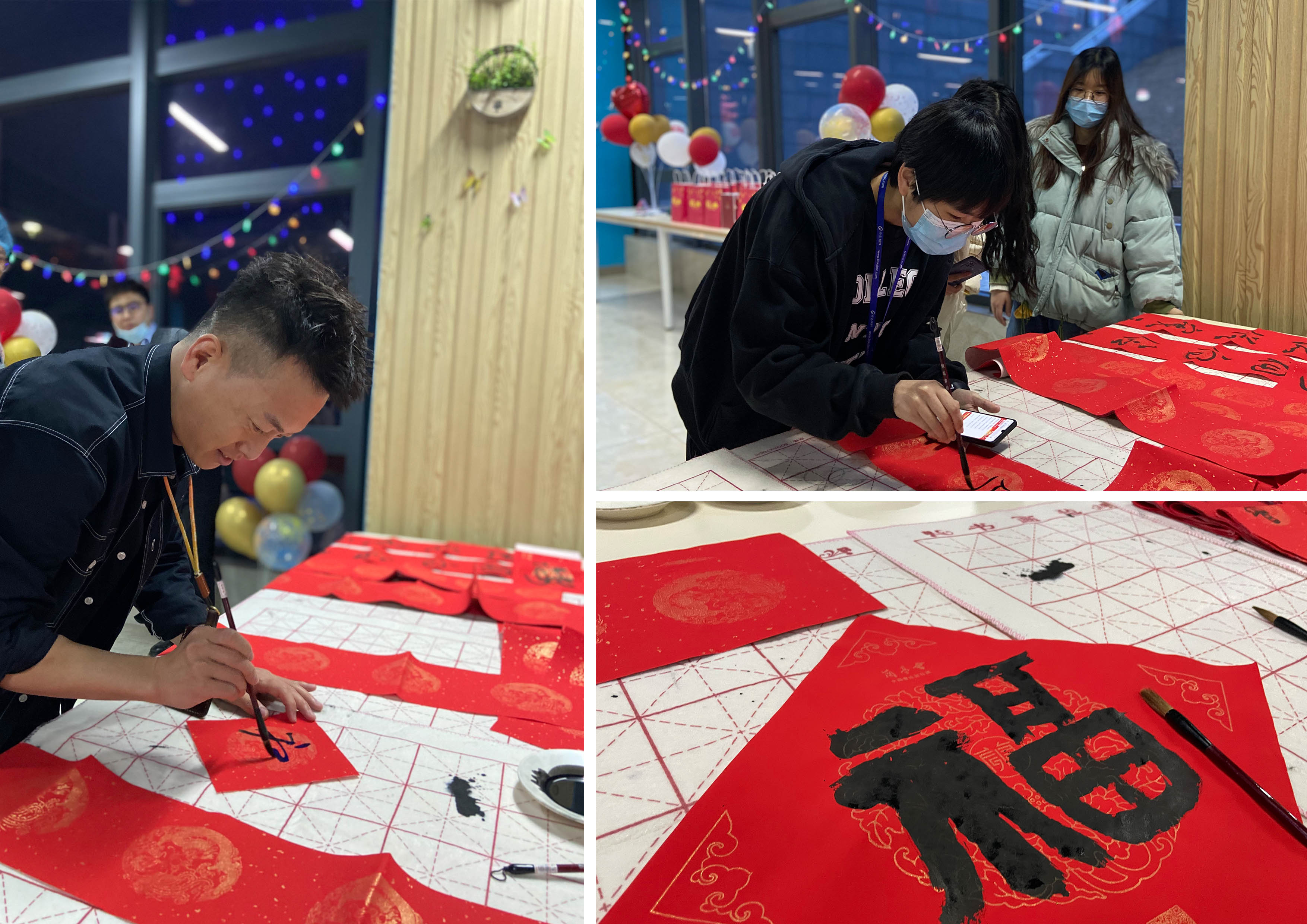 煮餃子間隙,來一場才藝大比拼,寫春聯(lián)、對對聯(lián),可謂八仙過海,各顯神通!