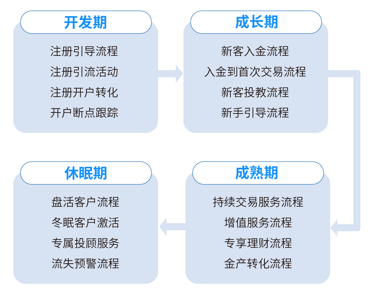 隨著產(chǎn)品規(guī)模的擴張和移動互聯(lián)網(wǎng)的建設,證券行業(yè)已具備數(shù)字化運營基礎和多元化服務場景。一方面,線上用戶數(shù)量激增,另一方面,傳統(tǒng)的線下服務已不能滿足用戶日益多元化的投資需求。創(chuàng)新運營模式,融合線上線下資源,提供精細化、自動化、智能化運營策略,成為券商數(shù)字化轉型的重要利器。