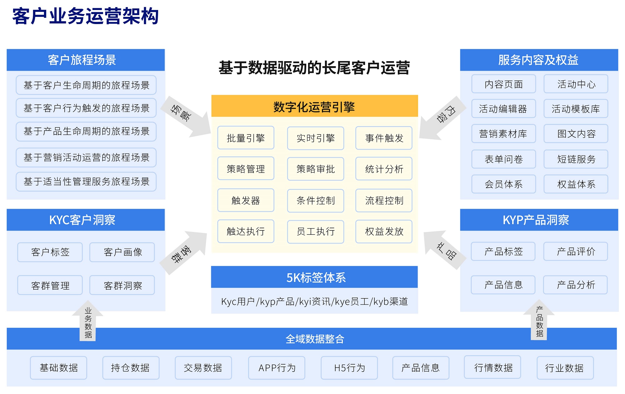 從識別客戶的相關標簽和行為數據到對客戶的畫像分群,針對客群制定個性化的服務策略、配置渠道與內容,在客戶關鍵場景下進行線上或線下的運營觸達。