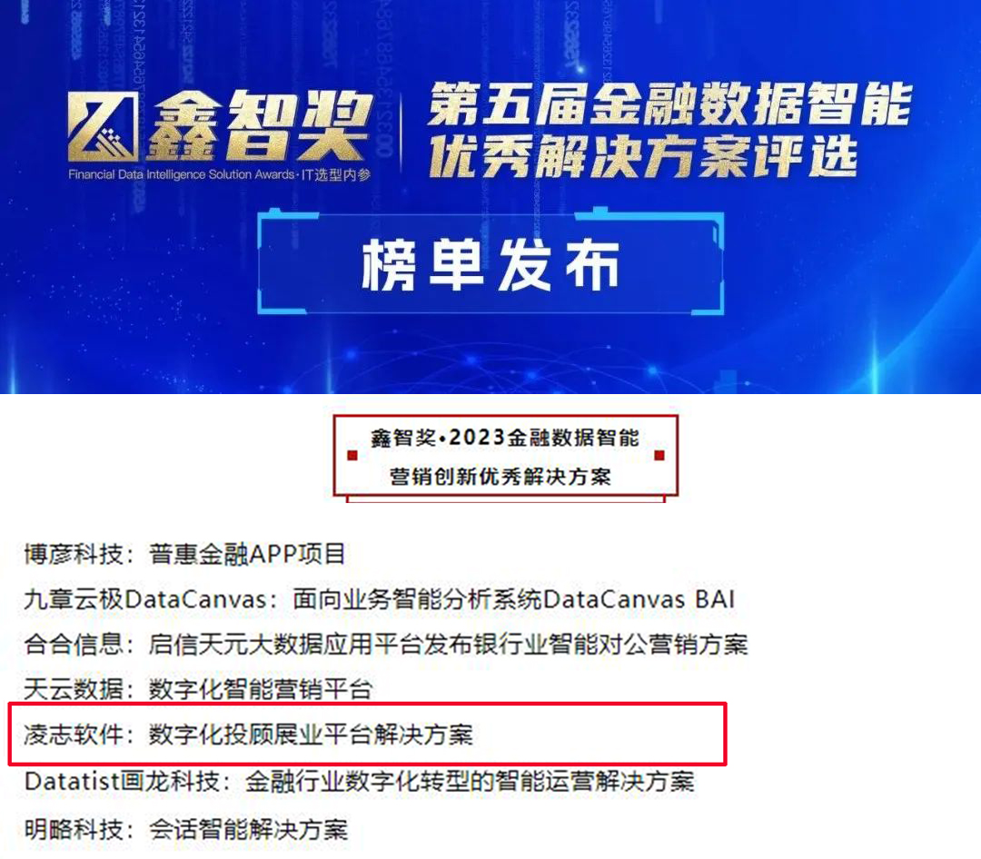為展示金融企業(yè)數(shù)據(jù)管理和數(shù)據(jù)平臺(tái)智能化轉(zhuǎn)型成果,分享大數(shù)據(jù)和人工智能在金融科技場(chǎng)景的落地實(shí)踐,日前,金科創(chuàng)新社發(fā)布了《鑫智獎(jiǎng)·第五屆金融數(shù)據(jù)智能優(yōu)秀解決方案評(píng)選榜單》,凌志軟件數(shù)字化投顧展業(yè)平臺(tái)解決方案憑借其技術(shù)先進(jìn)性及創(chuàng)新性,榮獲“鑫智獎(jiǎng)·2023金融數(shù)據(jù)智能營(yíng)銷(xiāo)創(chuàng)新優(yōu)秀解決方案”稱(chēng)號(hào)。