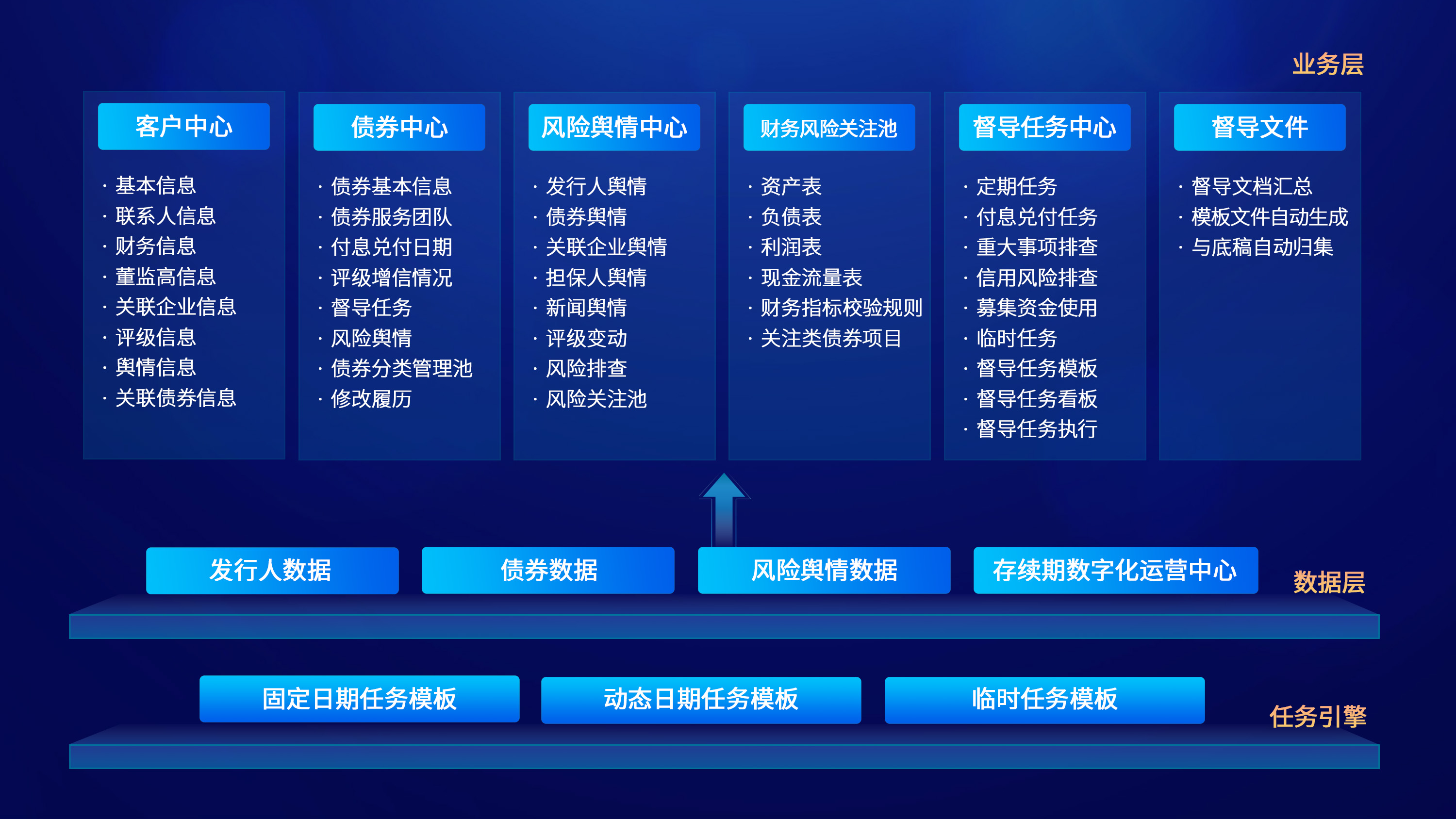 隨著金融市場(chǎng)的不斷發(fā)展和進(jìn)步,債券市場(chǎng)作為重要的融資渠道之一,其監(jiān)管和風(fēng)險(xiǎn)控制日益受到關(guān)注,投行作為受托管理人,監(jiān)管機(jī)構(gòu)對(duì)其在債券存續(xù)期間的核查要求越來(lái)越詳細(xì),質(zhì)控要求也越來(lái)越嚴(yán)格。同時(shí),面對(duì)違約事件頻發(fā)的困境,受托人在業(yè)務(wù)執(zhí)行和合規(guī)管理方面急需專業(yè)技術(shù)平臺(tái)的支撐。