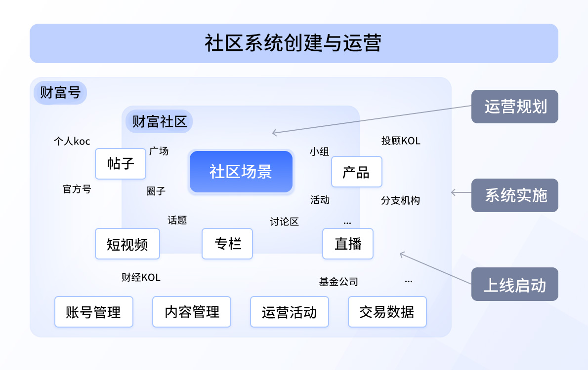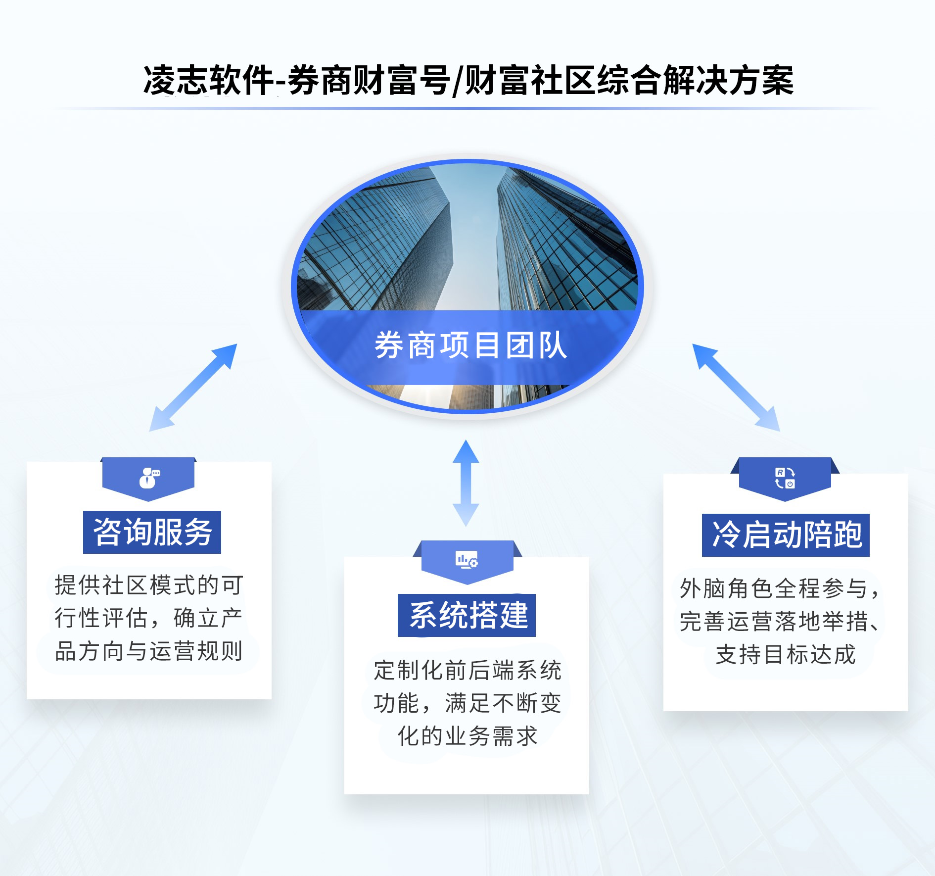 結合行業(yè)發(fā)展需求,凌志軟件基于對券商內在條件、資源配置和獨特需求的深度分析,全面評估最適合的模式及可行性,為券商提供券商財富號/財富社區(qū)綜合解決方案,方案圍繞社區(qū)創(chuàng)建,從運營規(guī)劃、系統(tǒng)實施、上線啟動到常態(tài)化過程,為券商順利啟動和優(yōu)化社區(qū)服務保駕護航。